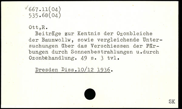 Beiträge zur Kentnis der Ozoribleiche der Baumwollw, sowie vergleichende Untersuchungen über das Verschiessen der Färbungen durch Sonnenbestrahlungen u.durch Ozonbehandlung.