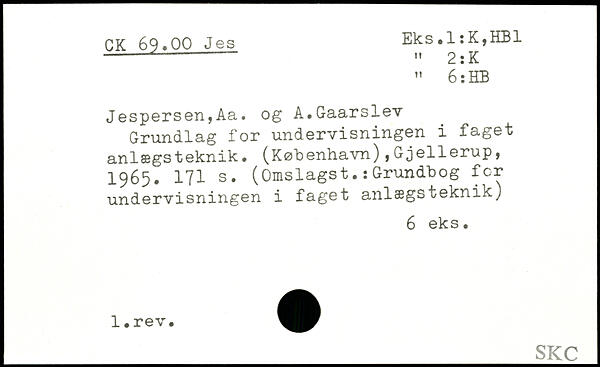 Grundlag for undervisningen i faget anlægsteknik. (København),ujellerup, 1965.
