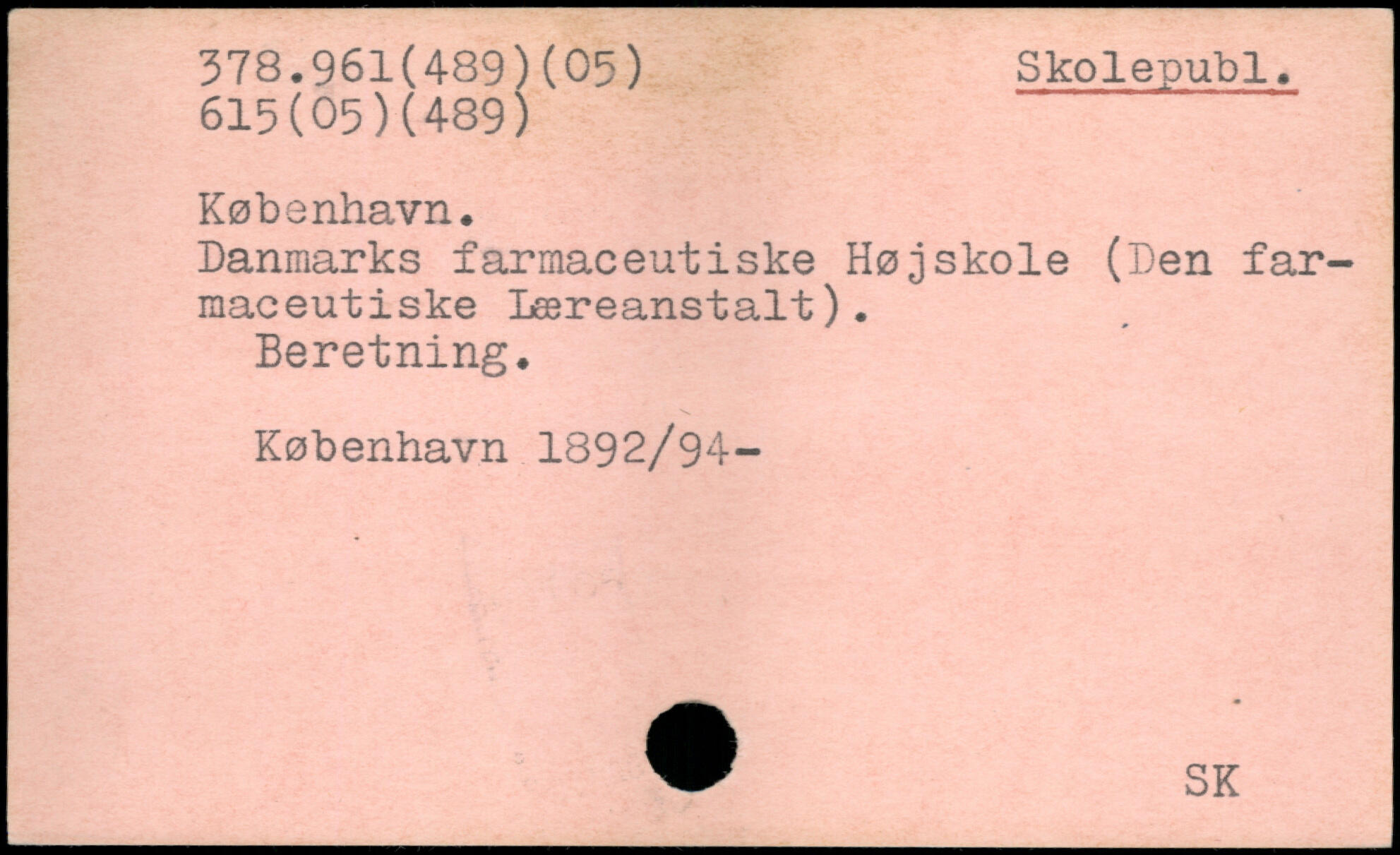 Danmarks farmaceutiske Højskole (Den farmaceutiske Læreanstalt). Beretning.