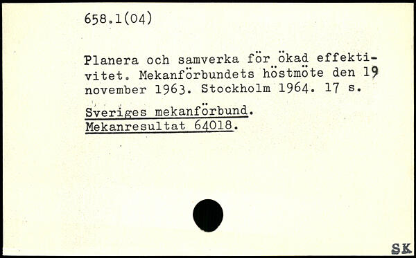Planera och samverka för^ökad effektivitet. Mekanförbundets höstmote den 19 november 19&3.