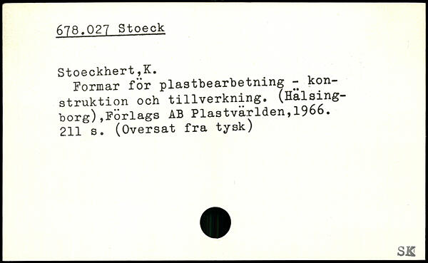 Formar för plastbearbetning - konstruktion och tillverkning. (Hälsingborg) ,Forlags AB Plastvarlden,I9oo.