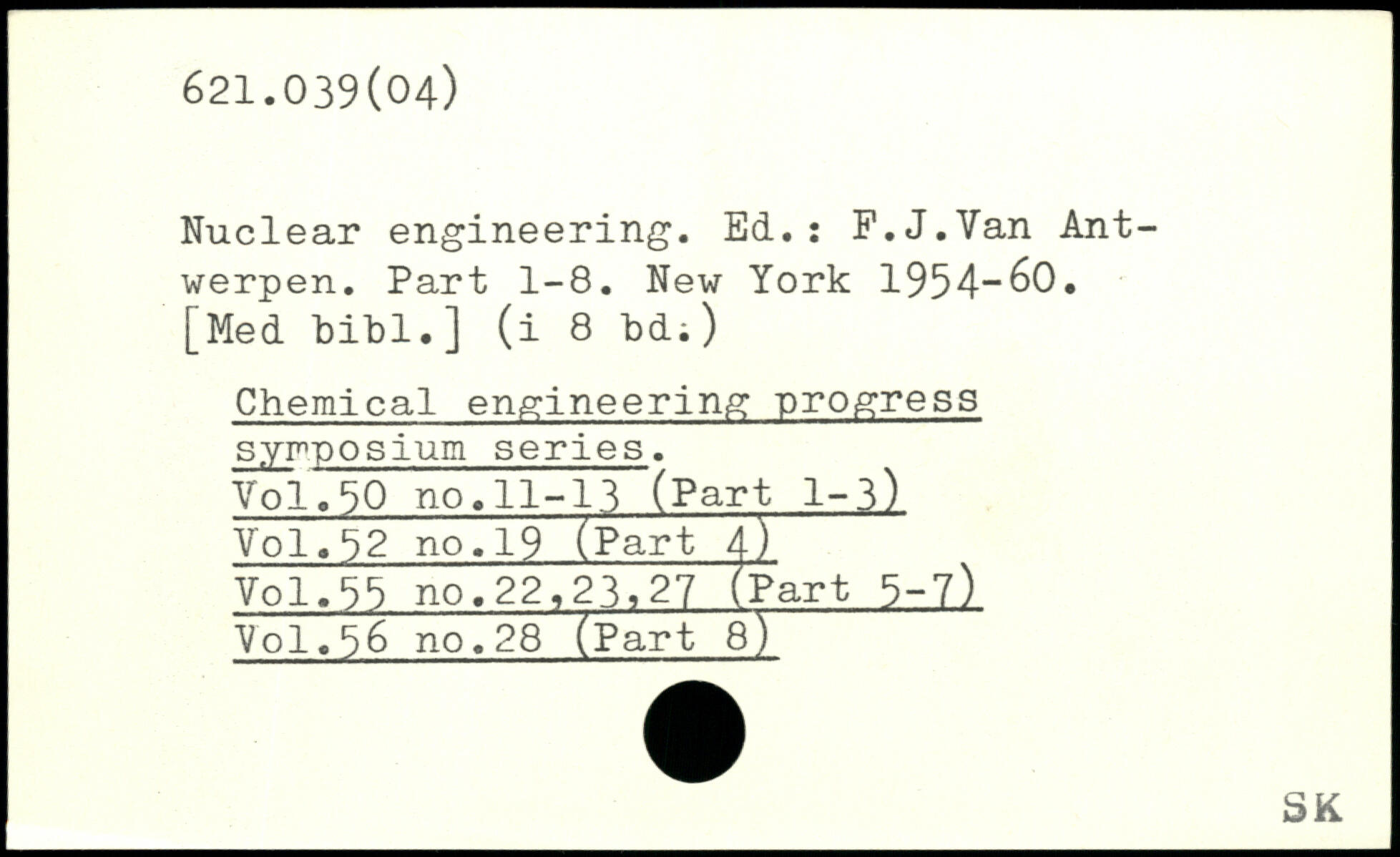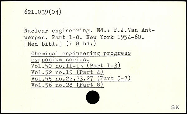 Nuclear engineering. Ed.: F.J.Van Antwerpen. Part 1-8.