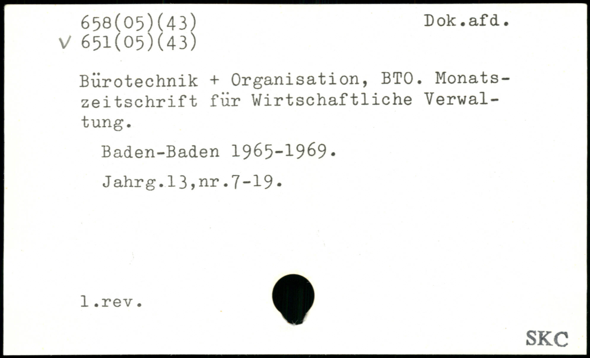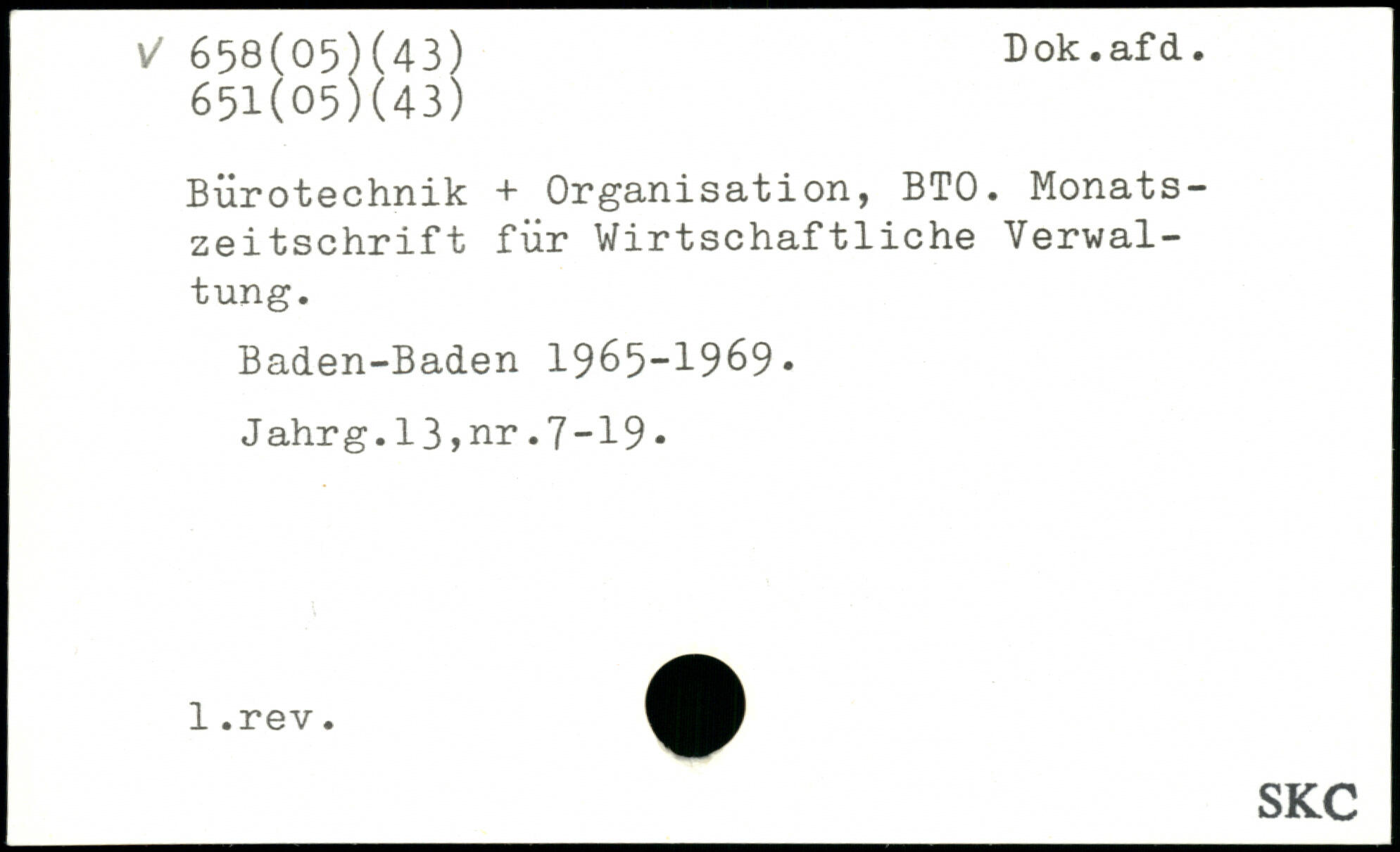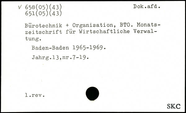 Bürotechnik + Organisation, BTO. Monatszeitschrift für Wirtschaftliche Verwaltung. Baden-Baden 1965-1969, Jahrg.13,nr.7-19.