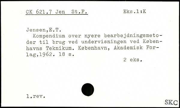 Kompendium over nyere bearbejdningsmetoder til brug ved undervisningen ved Københavns Teknikum.