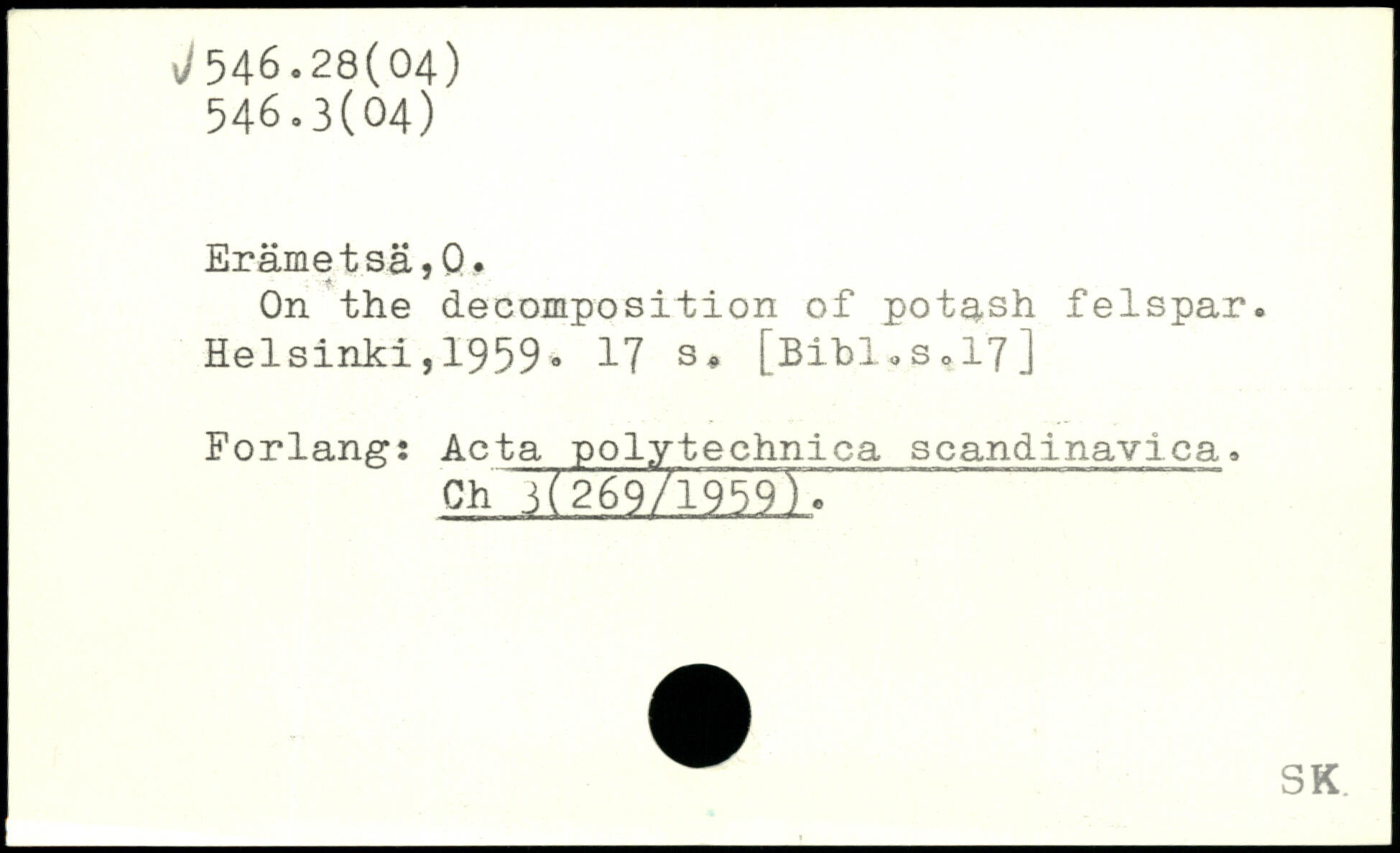 On the decomposition of potash felspar. Helsinki,1959.