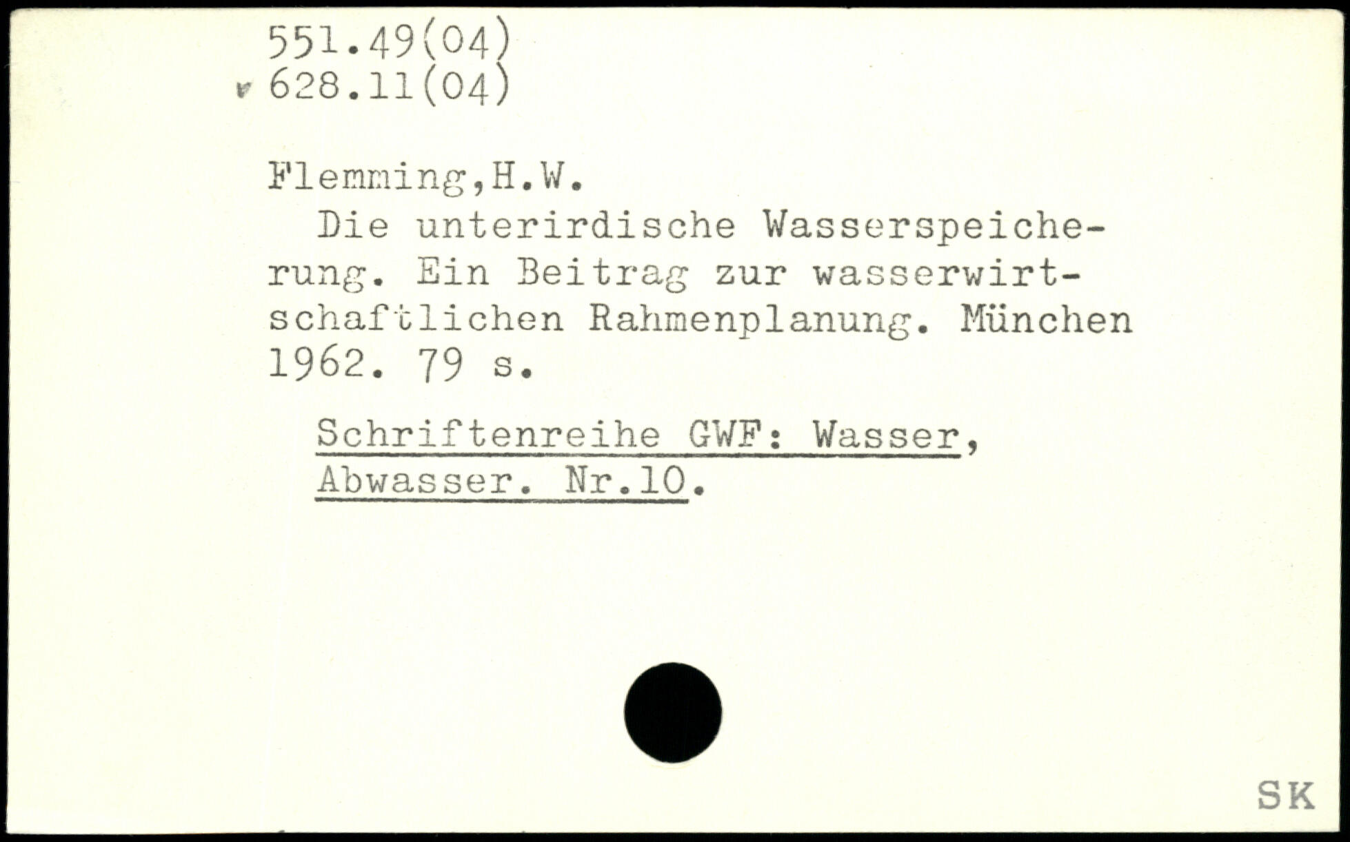 Die unterirdische Wasserspeicherung. Ein Beitrag zur wasserwirtschaftlichen Rahmenplanung.