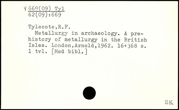 Metallurgy in archaeology. A prehistory of metallurgy in the British Isles.