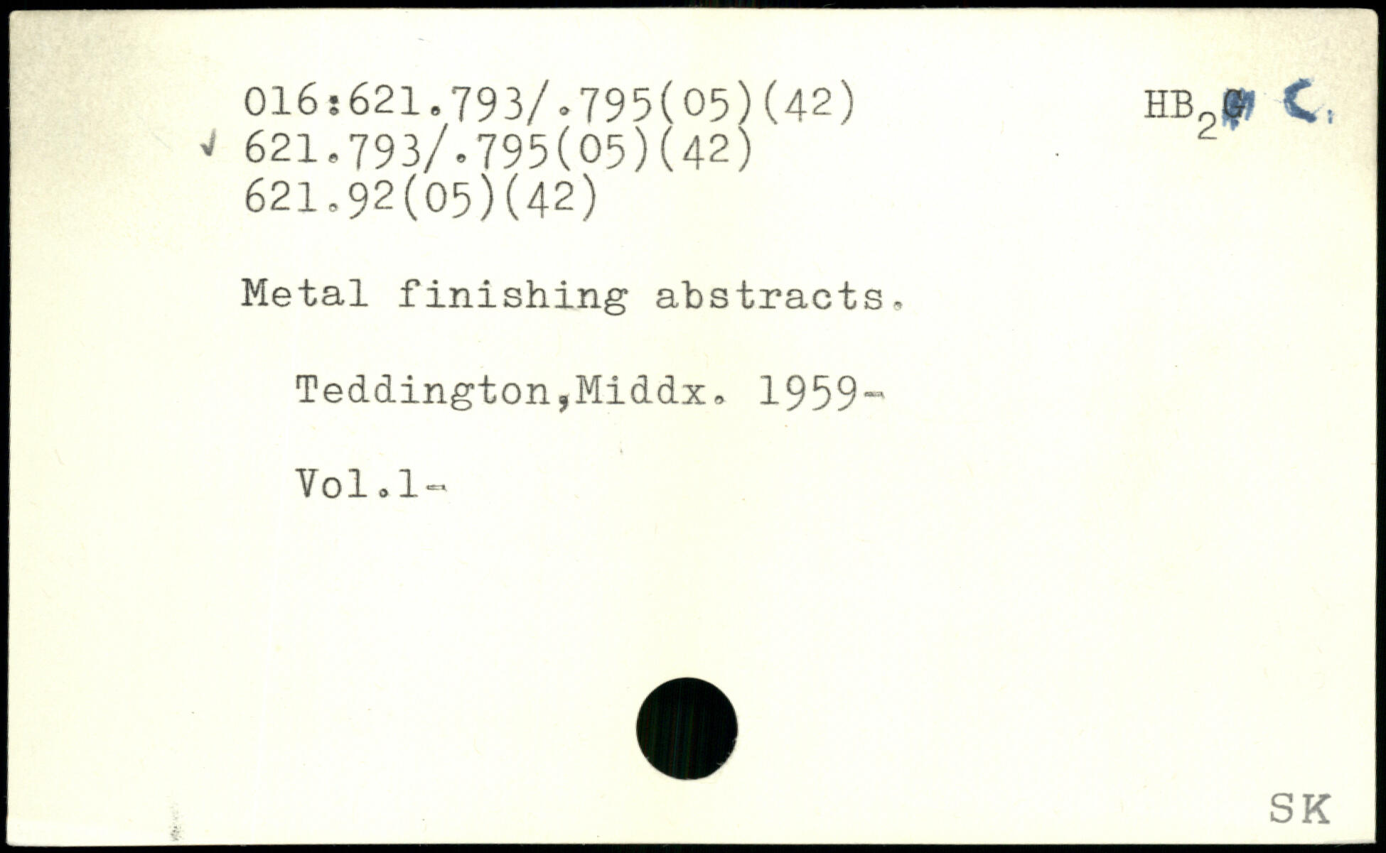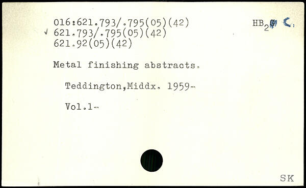Metal finishing abstracts, Teddington,Middx, 1959-Vol.l- SK