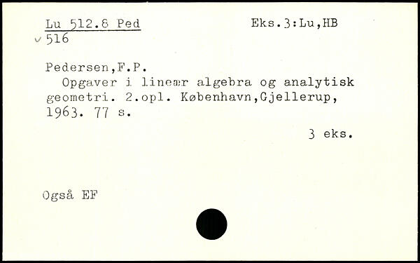 Opgaver i lineær algebra og analytisk geometri. 2.opl.