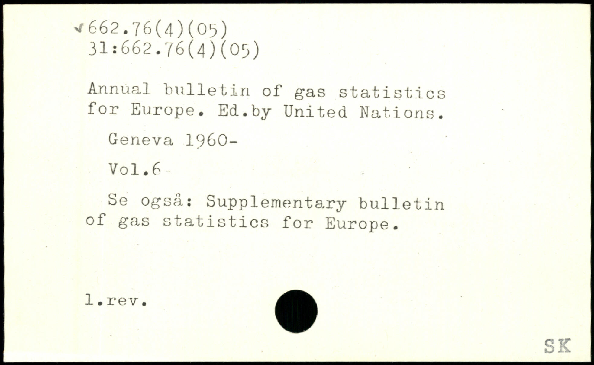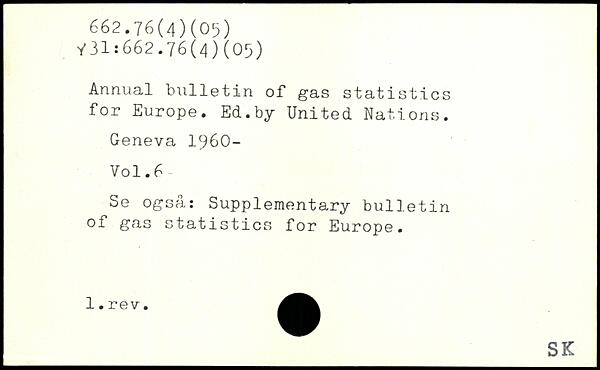 Annual bulletin of gas statistics for Europe. Ed.by United Nations.