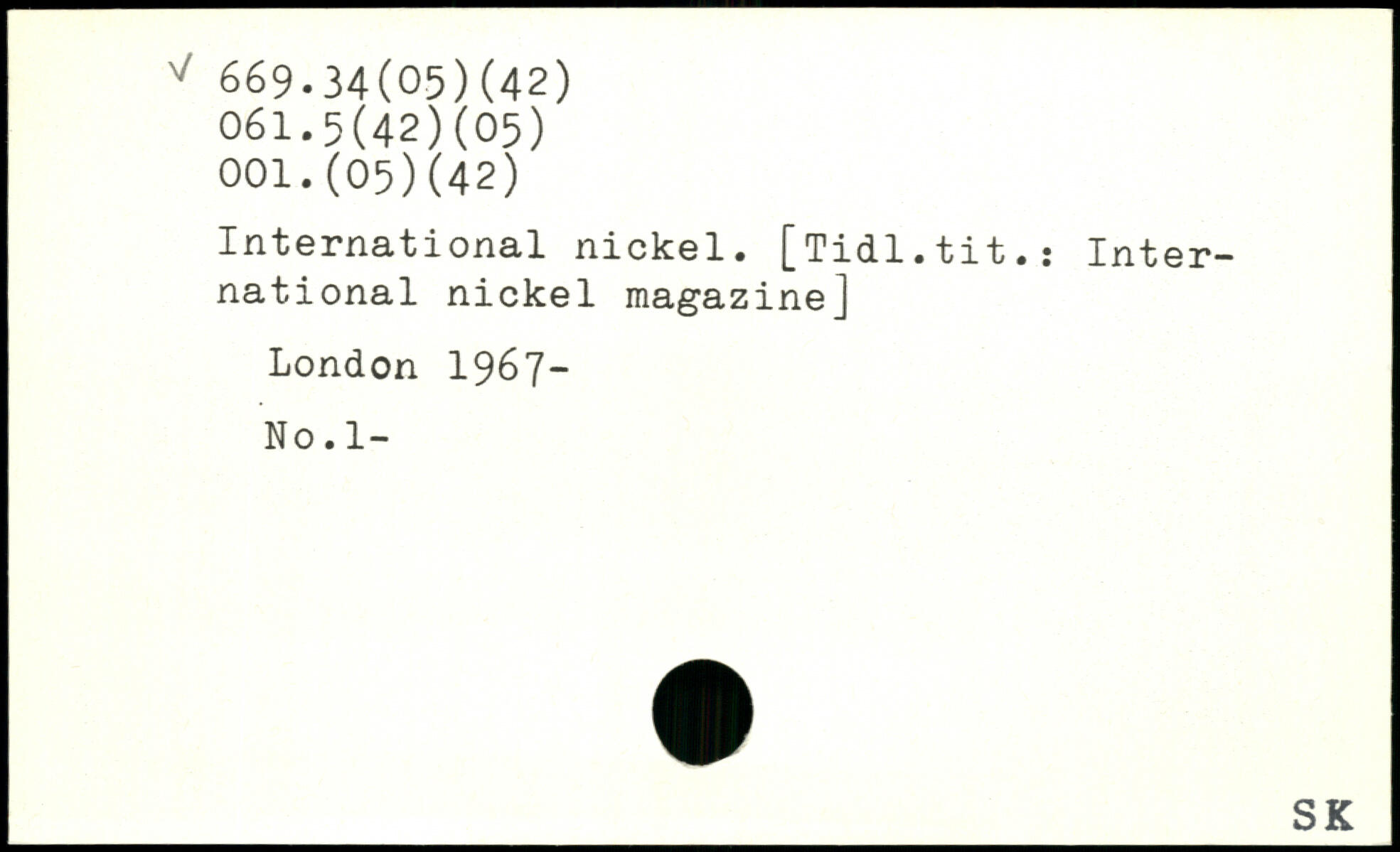 International nickel. [Tidl.tit.j International nickel magazine] London 196 7- No.l-