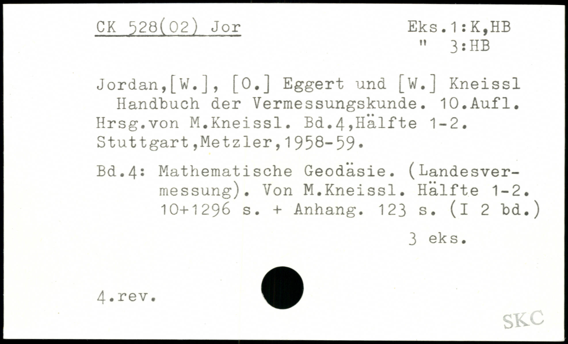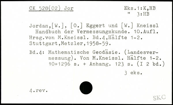 Jordan,[W.], [0.] Eggert und [W.] Kneissl Handbuch der Vermessungskunde. lO.Aufl. Hrsg.von M.Kneissl.