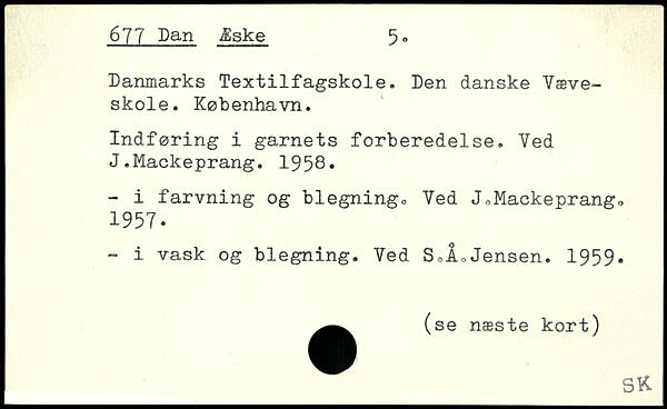 Danmarks Textilfagskole. Den danske Væveskole. København. Indføring i garnets forberedelse. Ved J.Mackeprang. 1958. - i farvning og blegningo Ved JoMackeprango 1957- - i vask og blegning. Ved SoÅoJensen. 1959.