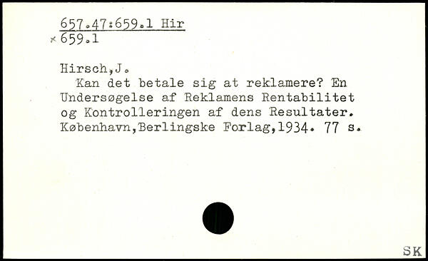 Kan det betale sig at reklamere? En Undersøgelse af Reklamens Rentabilitet og Kontrolleringen af dens Resultater.