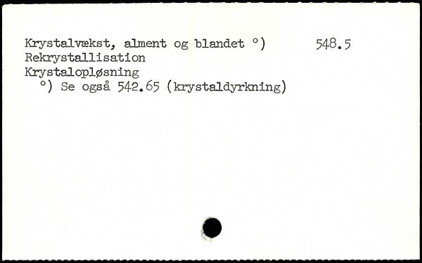 Krystalvækst, alment og "blandet .) 548.5 Rekrystallisation Krystalopløsning .) Se også 542.65 (krystaldyrkning)