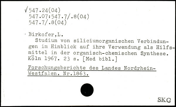- Birkofer,L. Studium von siliciumorganischen Verbindungen im Hinblick auf ihre Verwendung als Hilfsmittel in der organisch-chemischen Synthese.
