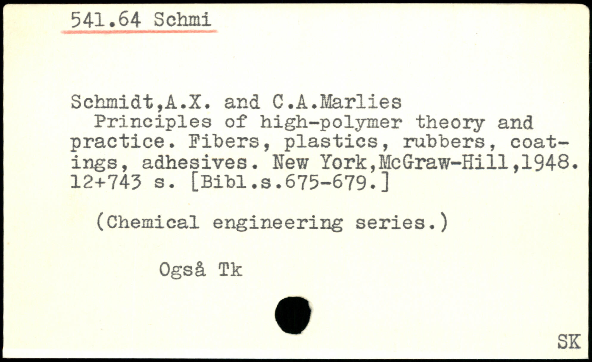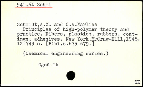 Principles of high-polymer theory and practice. Fibers, plastics, rubbers, coatings, adhesives.