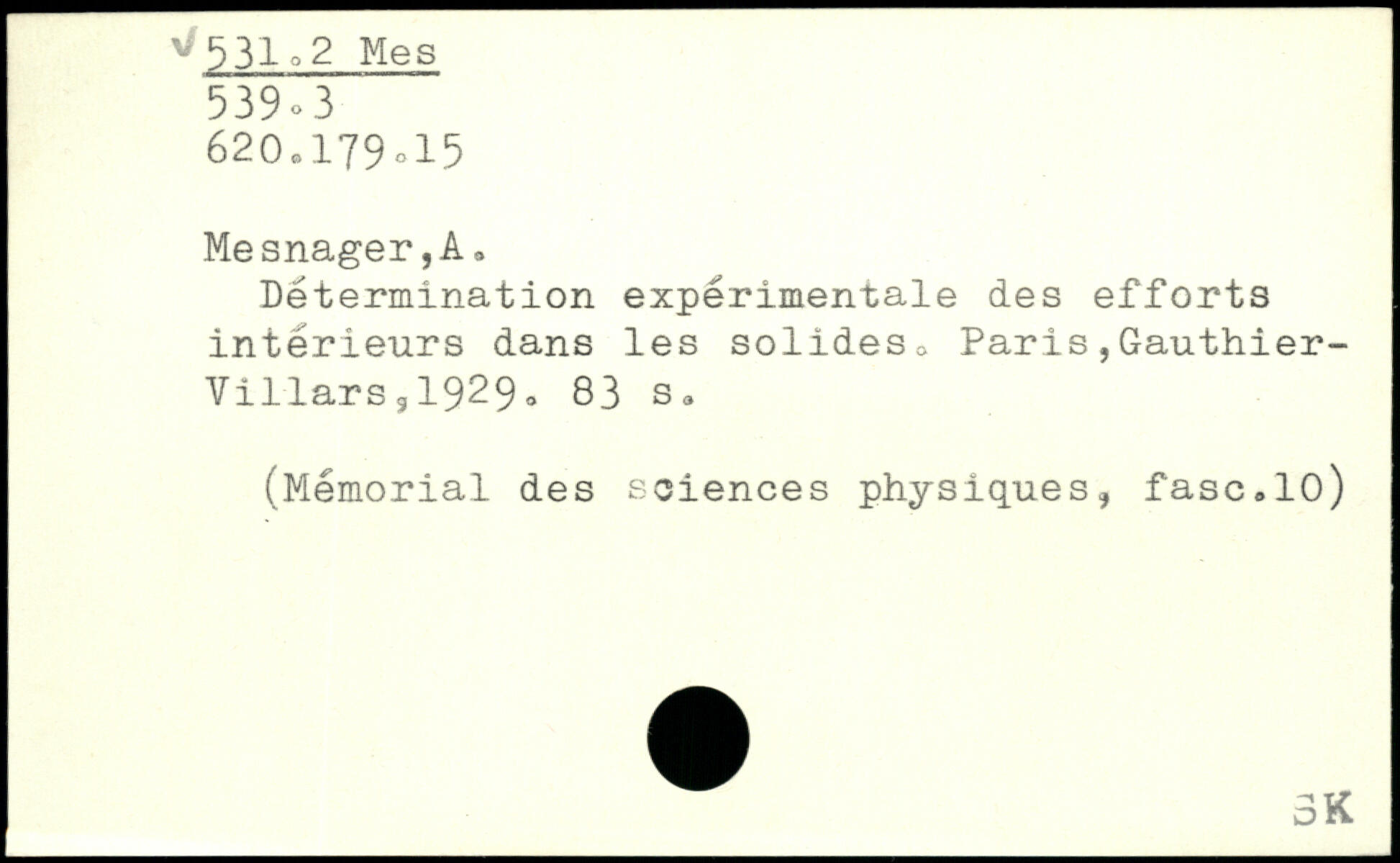 Détermination expérimentale des efforts intérieurs dans les solides, Paris,Gauthier- ViLlars91929