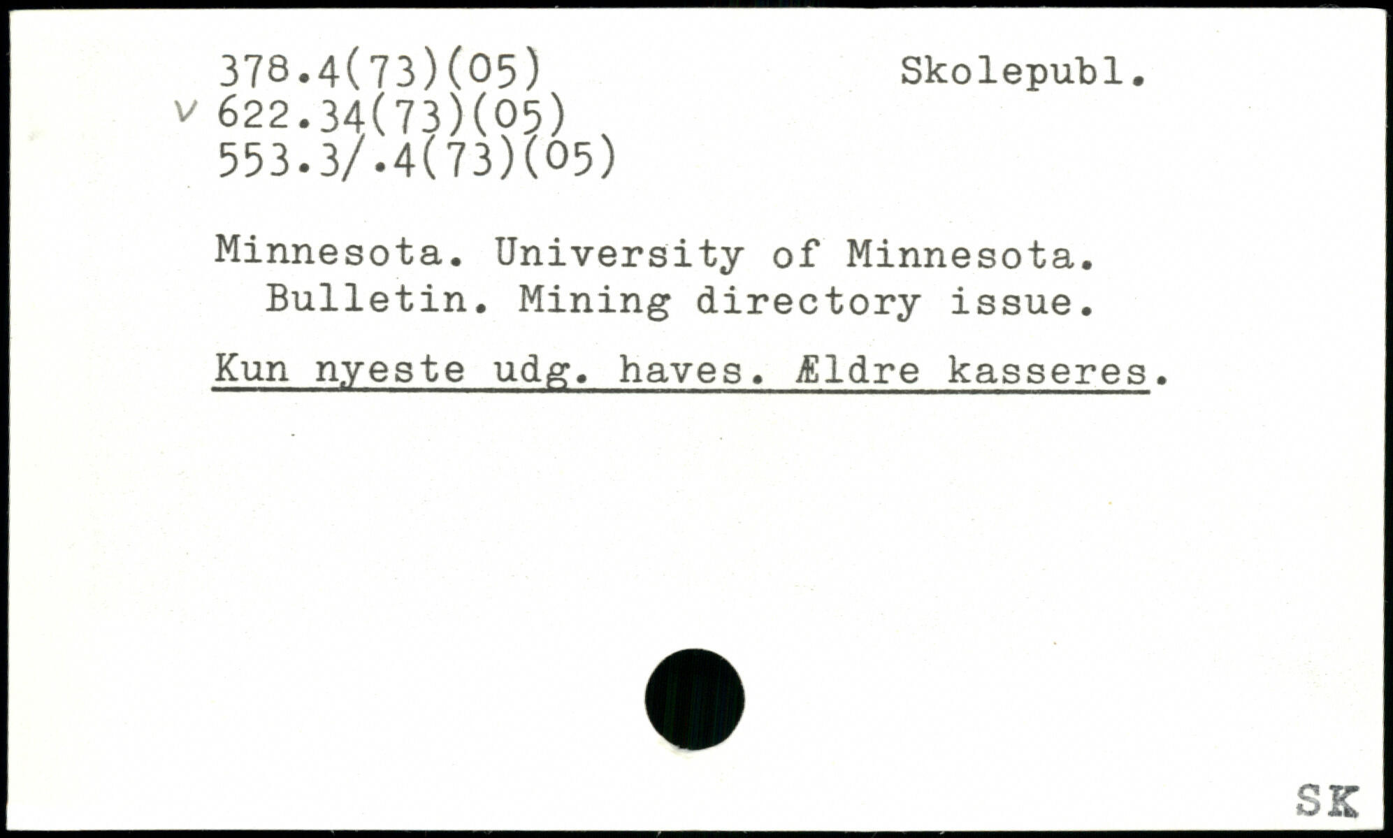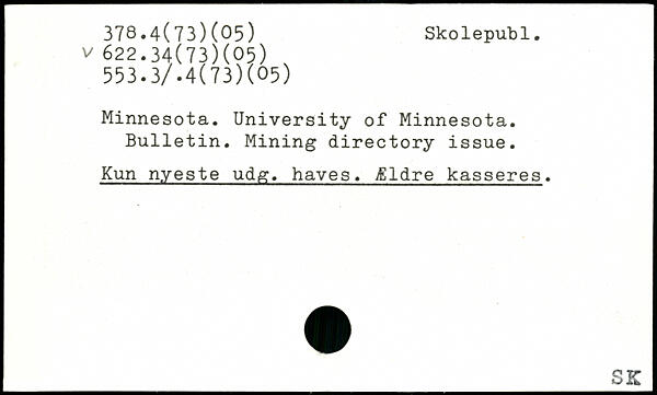 Minnesota. University of Minnesota. Bulletin. Mining directory issue. Kun nyeste udg. haves. Ældre kasseres.