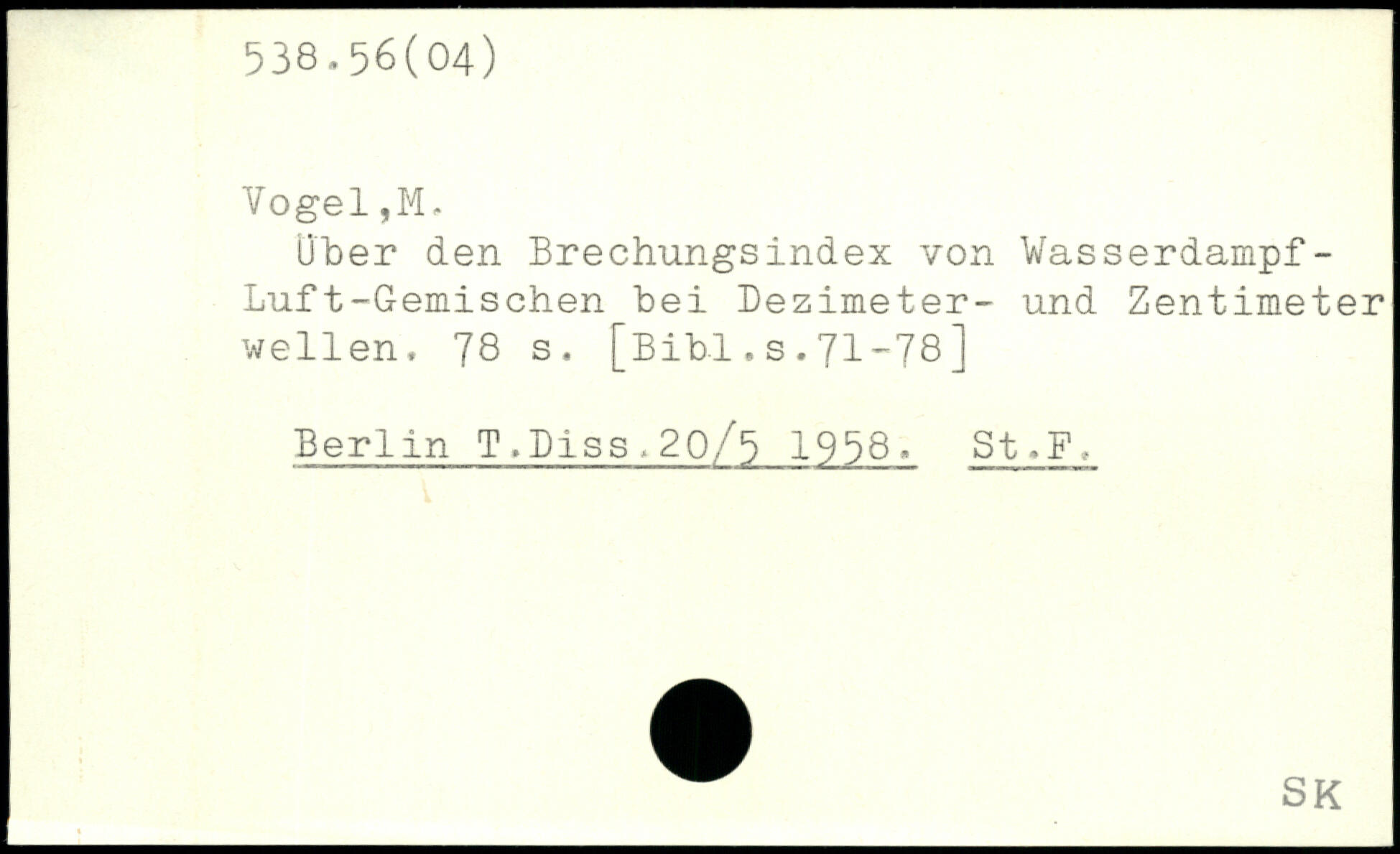 Über den Brechungsindex von Wasserdampf-Luft -Gemischen bei Dezimeter- und Zentimeter wellen.