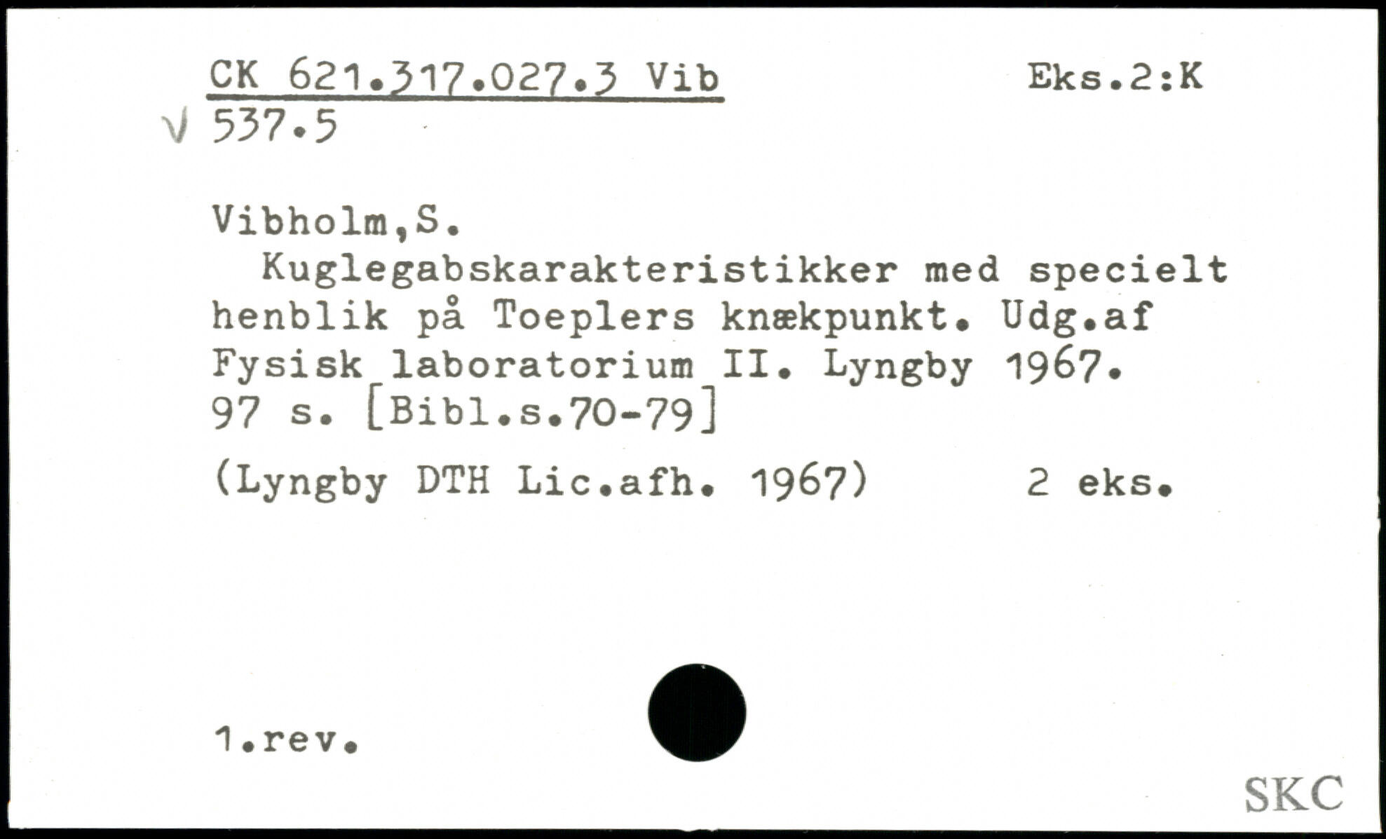 Kuglegabskarakteristikker med specielt henblik på Toeplers knækpunkt. Udg.af Fysisk laboratorium II. Lyngby 1967.