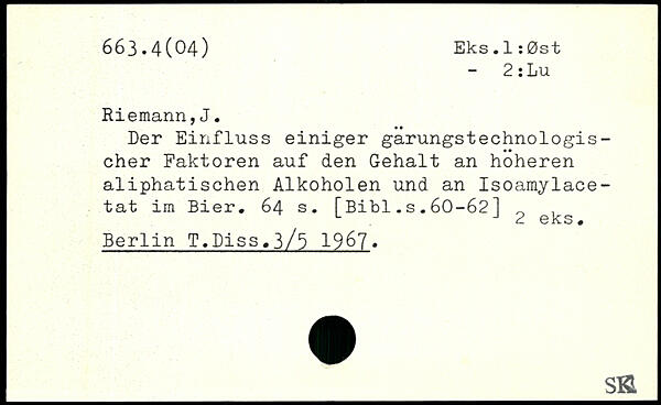Der Einfluss einiger garungstechnologis-eher Faktoren auf den Gehalt an höheren aliphatischen Alkoholen und an Isoamylace-tat im Bier.