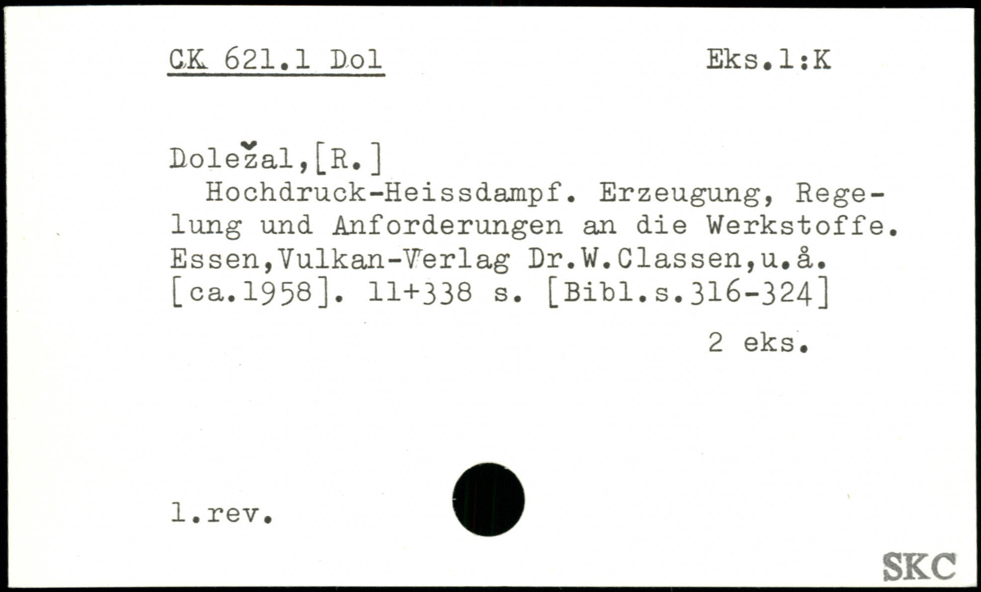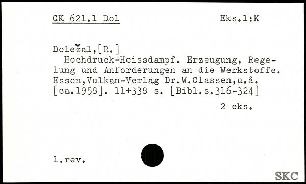 Hochdruck-Heissdampf. Erzeugung, Regelung und Anforderungen an die Werkstoffe. Essen,Vulkan-Verlag Dr.W.Classen,u.ä. [ca.l95ö].