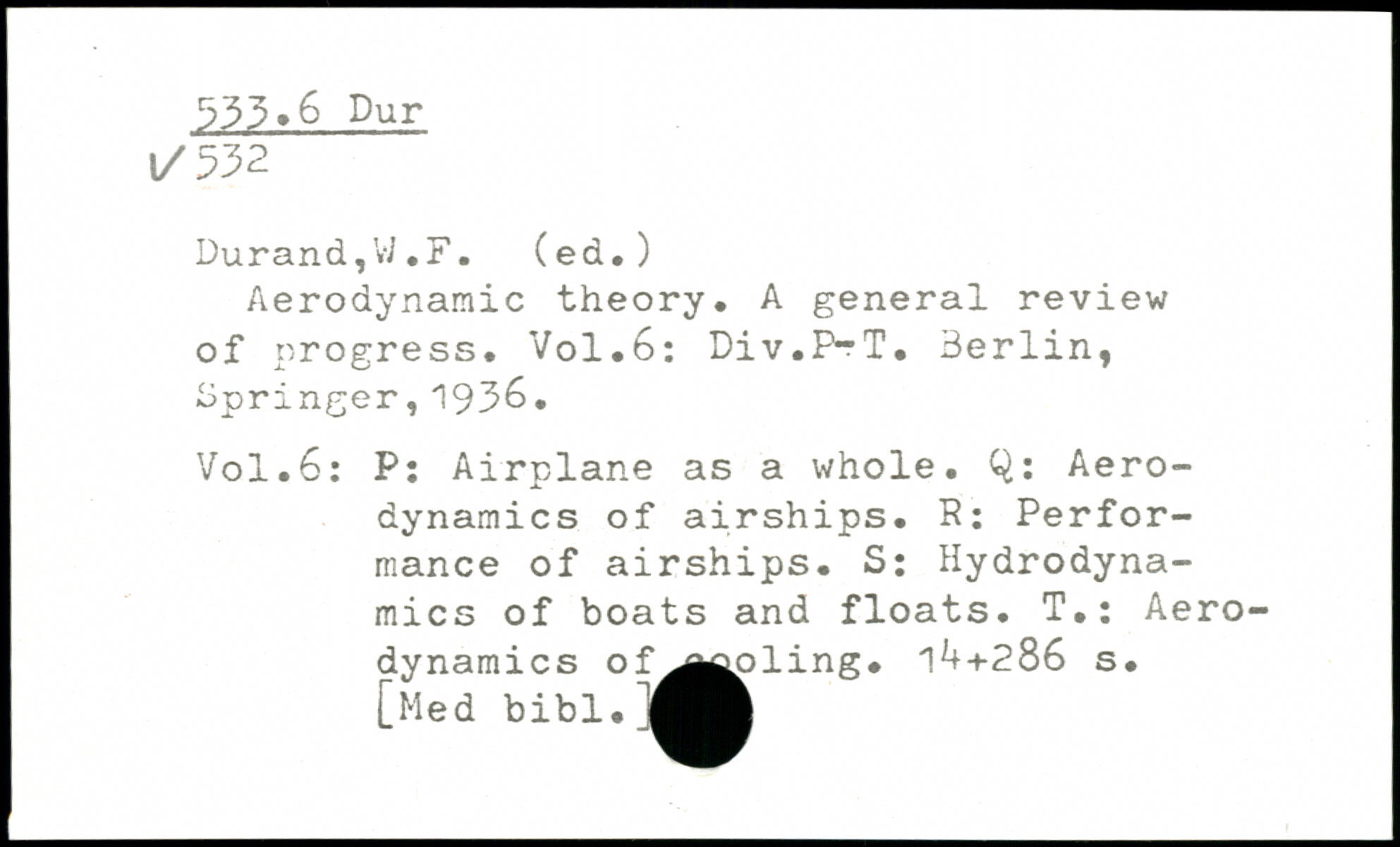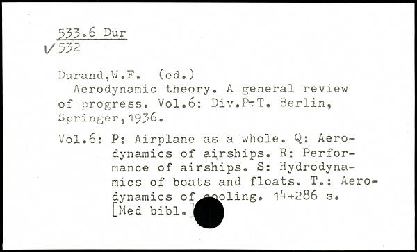 Durand, Vi. F. (ed.) Aerodynamic theory. A general review of progress.