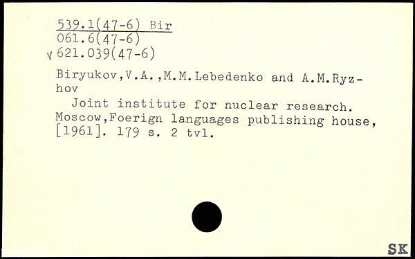 Forfatter: V.A. Biryukov, M.M. Lebedenko