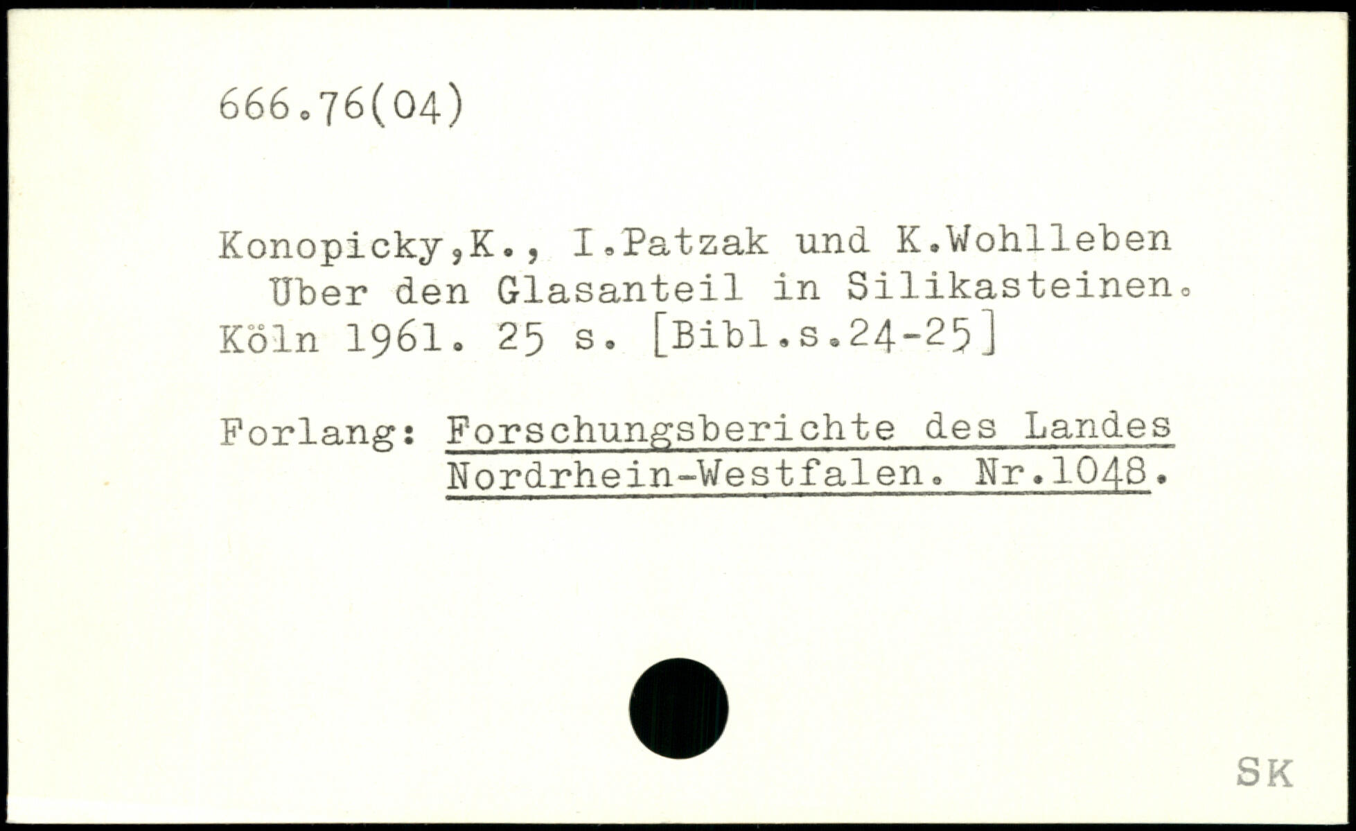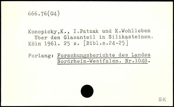 KonopickyjK. j I.Patzak und. K.Wohlleben Uber den Glasanteil in Silikasteinen
