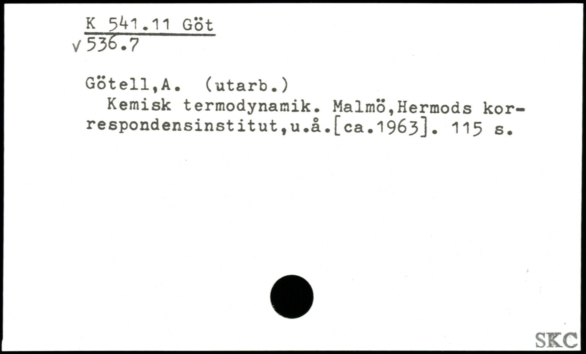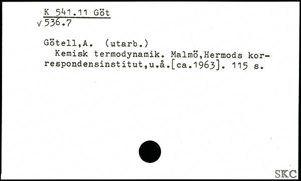 Kemisk termodynamik. Malmö,Hermods korrespondensinstitut ,u.å.[ca.1963].