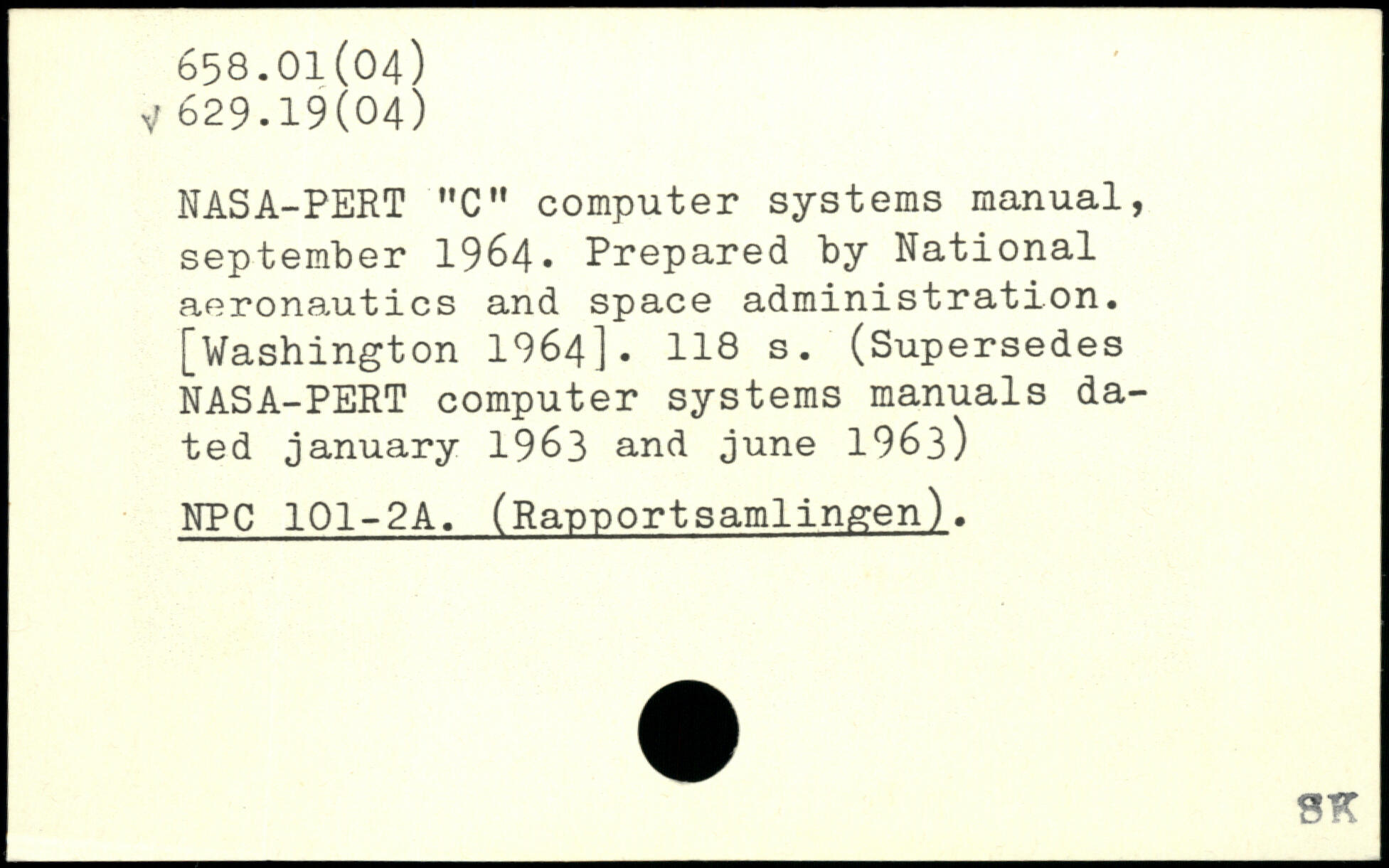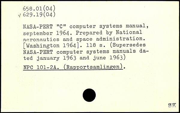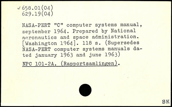 NASA-PERT "C" computer systems manual, September 1964, Prepared by National aeronautics and space administration.