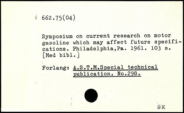 Symposium on current research on motor gasoline which may affect future specifications. Philadelphia,Pa. 1961.