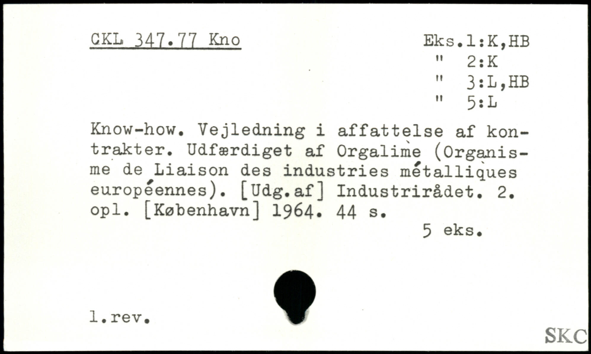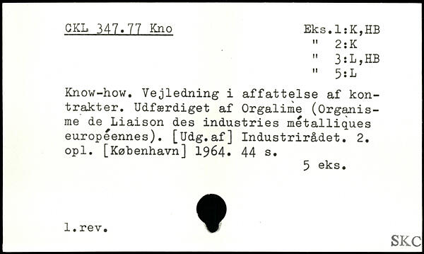 Know-how. Vejledning i affattelse af kontrakter. Udfærdiget af Orgalime (Organisme de Liaison des industries métalliques européennes). [Udg.af] Industrirådet. 2. opl.