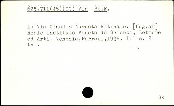 La Via Claudia Augusta Altinate. [Udg.af] Reale Instituto Veneto de Scienze, Lettere ed Arti.
