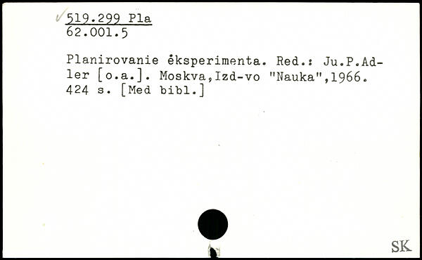 Planirovanie éksperimenta. Red.: Ju.P.Adler [o.a.]. Moskva,Izd-vo "Nauka",1966.