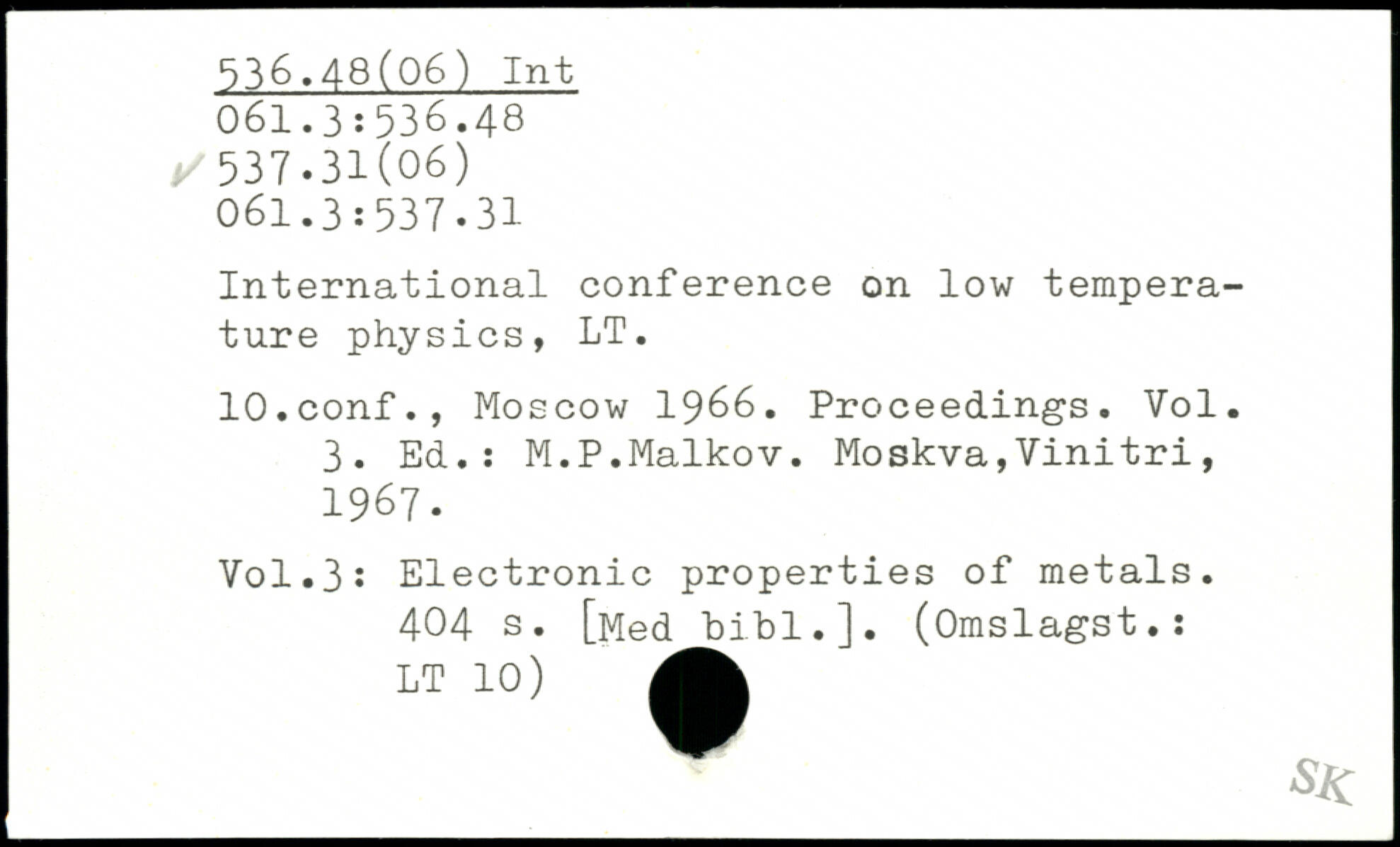 International conference on low temperature physics, LT. lO.conf., Moscow 1966. Proceedings. Vol. 3. Ed.: M.P.Maikov.