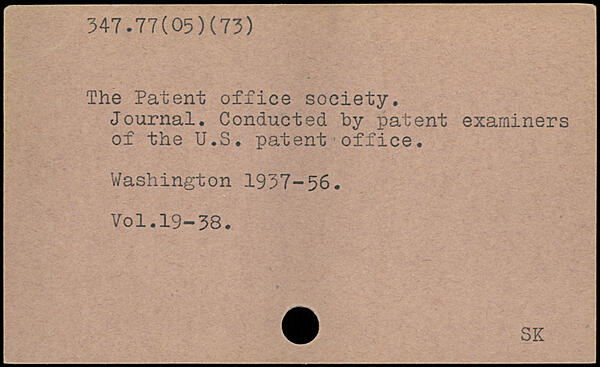 The Patent office society. Journal. Conducted by patent examiners of the U.S. patent office.