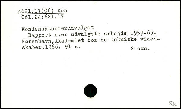 Rapport over udvalgets arbejde 1959-65. København,Akademiet for de tekniske videnskaber, 1966.