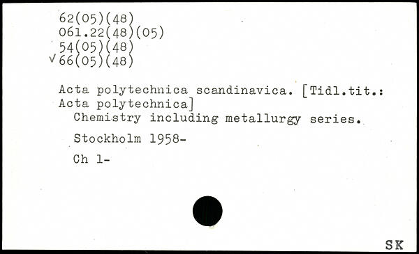 Acta polytechnica scandinavica. [Tidl.tit.; Acta polytechnica] Chemistry including metallurgy series.