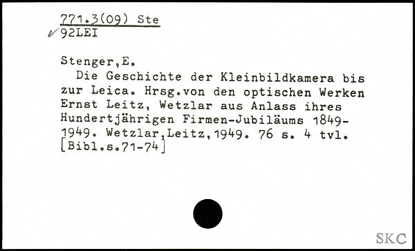 Die Geschichte der Kleinbildkamera bis zur Leica. Hrsg.von den optischen Werken Ernst Leitz, Wetzlar aus Anlass ihres Hundertjährigen Firmen-Jubiläums 18^9-19^9.