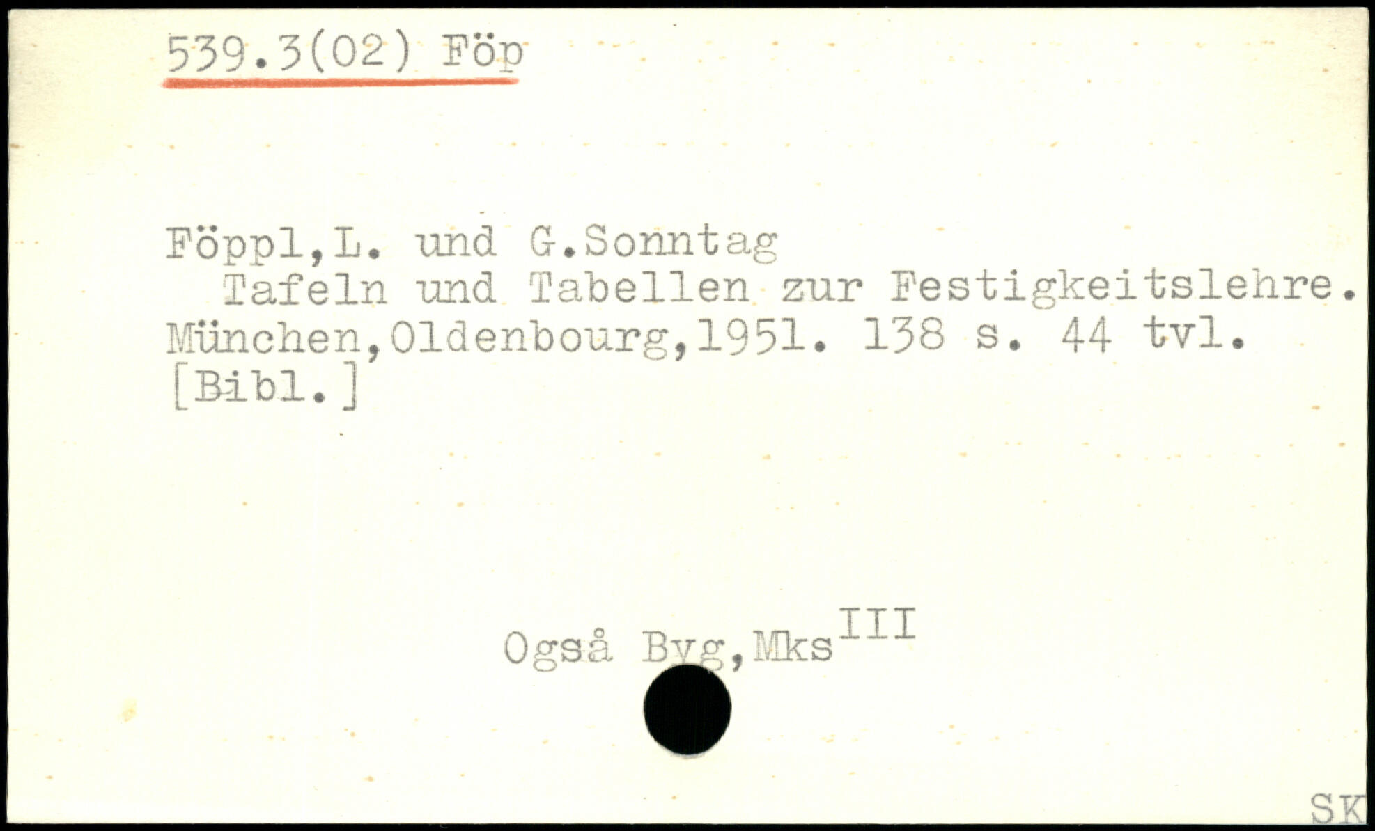 Föppl,L. und 0.Sonntag Tafeln and Tabellen zur Festigkeitslehre.