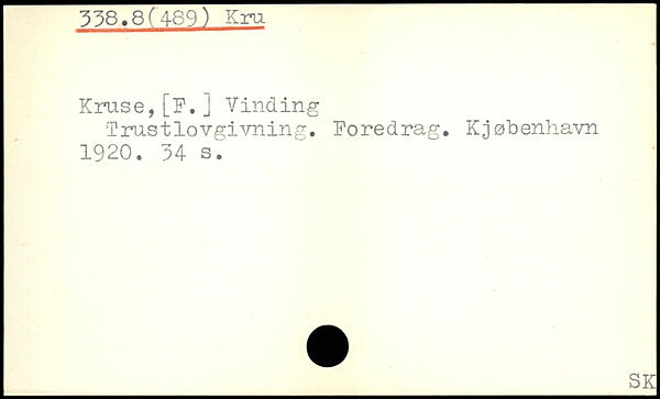 Kruse,[P.J Vinding Trustlovgivning. Foredrag. Kjøbenfravn 1920.