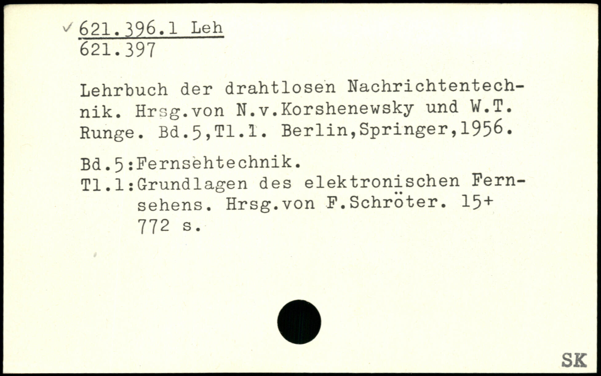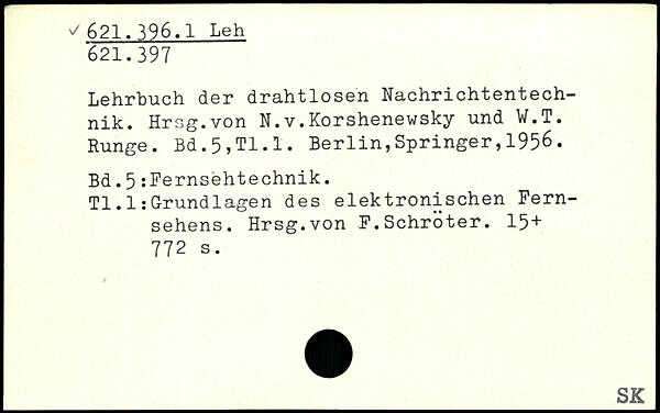 Lehrbuch der drahtlosen Nachrichtentechnik. Hrsg.von N.v.Korshenewsky und W.T. Runge.