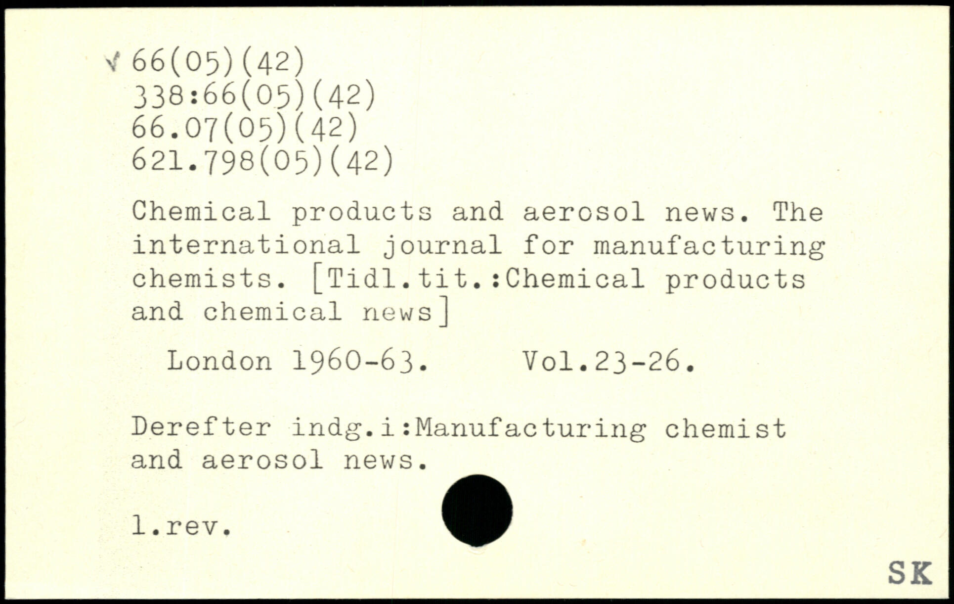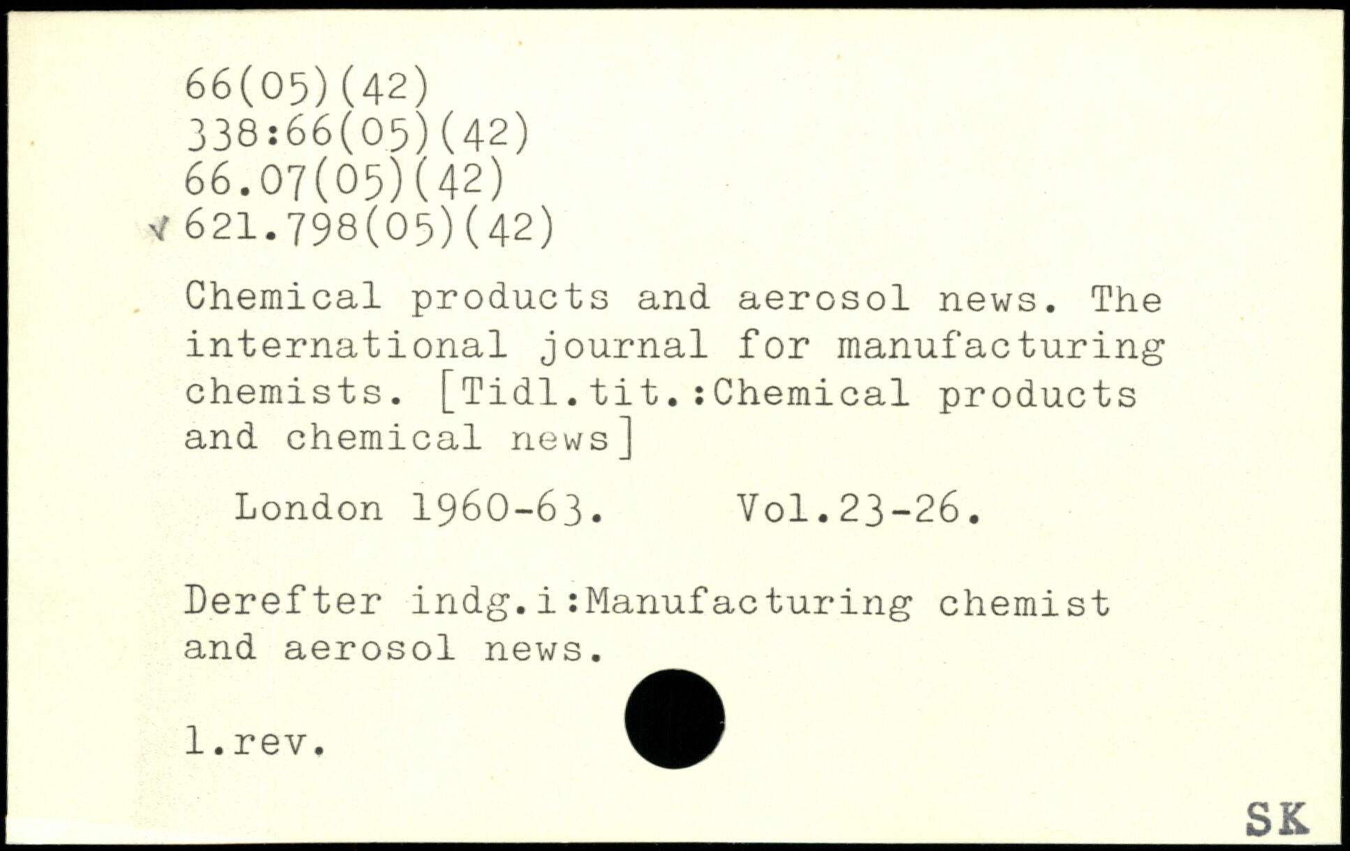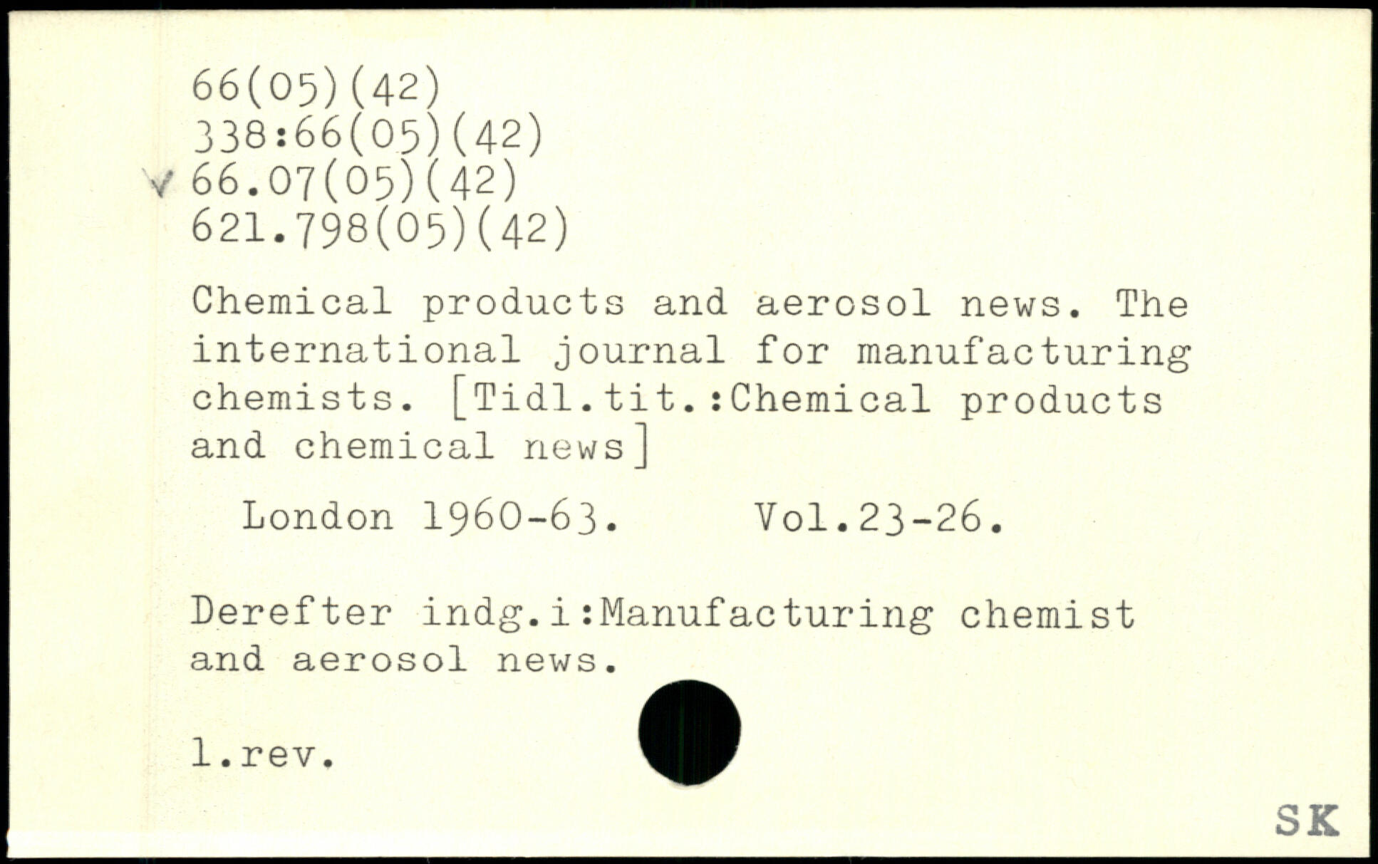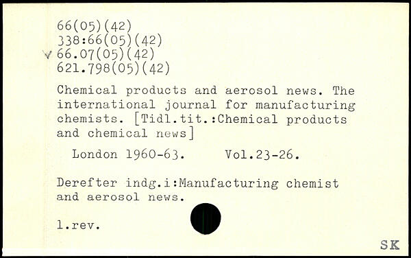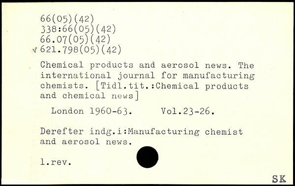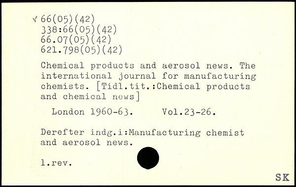 Chemical products and aerosol news. The international journal for manufacturing chemists. [Tidl.tit.:Chemical products and chemical news]
