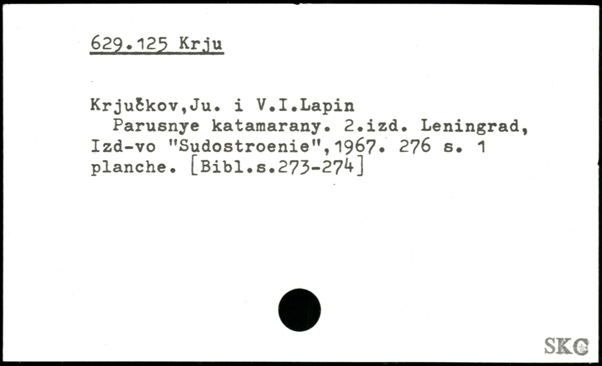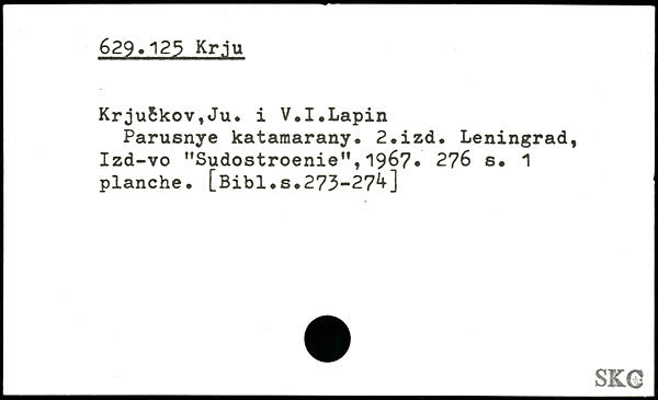 Krjufckov,Ju. i V.I.Lapin Parusnye katamarany. 2.izd. Leningrad, Izd-vo "Sudostroenie”,1967