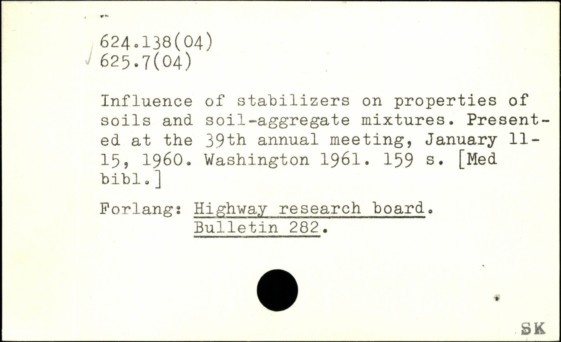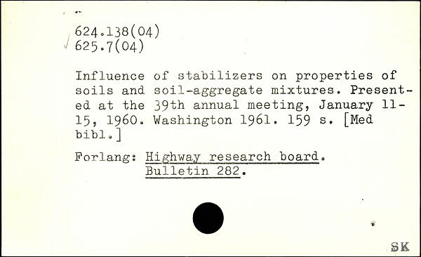 Influence of stabilizers on properties of soils and soil-aggregate mixtures. Presented at the 39th annual meeting, January 11-15, 1960.