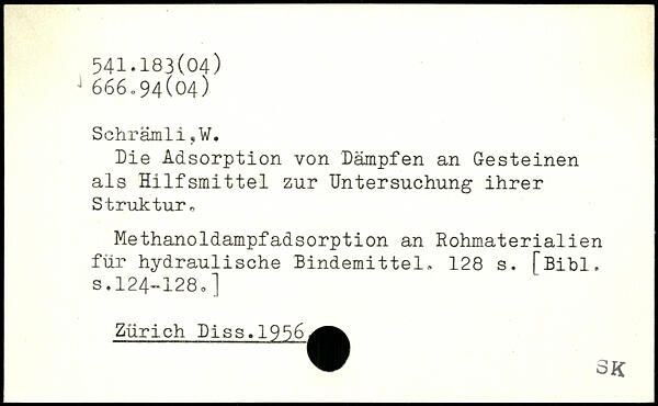 Die Adsorption von Dämpfen an Gesteinen als Hilfsmittel zur Untersuchung ihrer Strukturo Methanoldampfadsorption an Rohmaterialien für hydraulische Bindemittel.