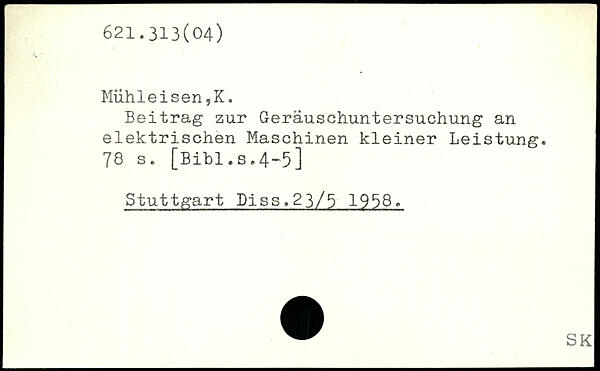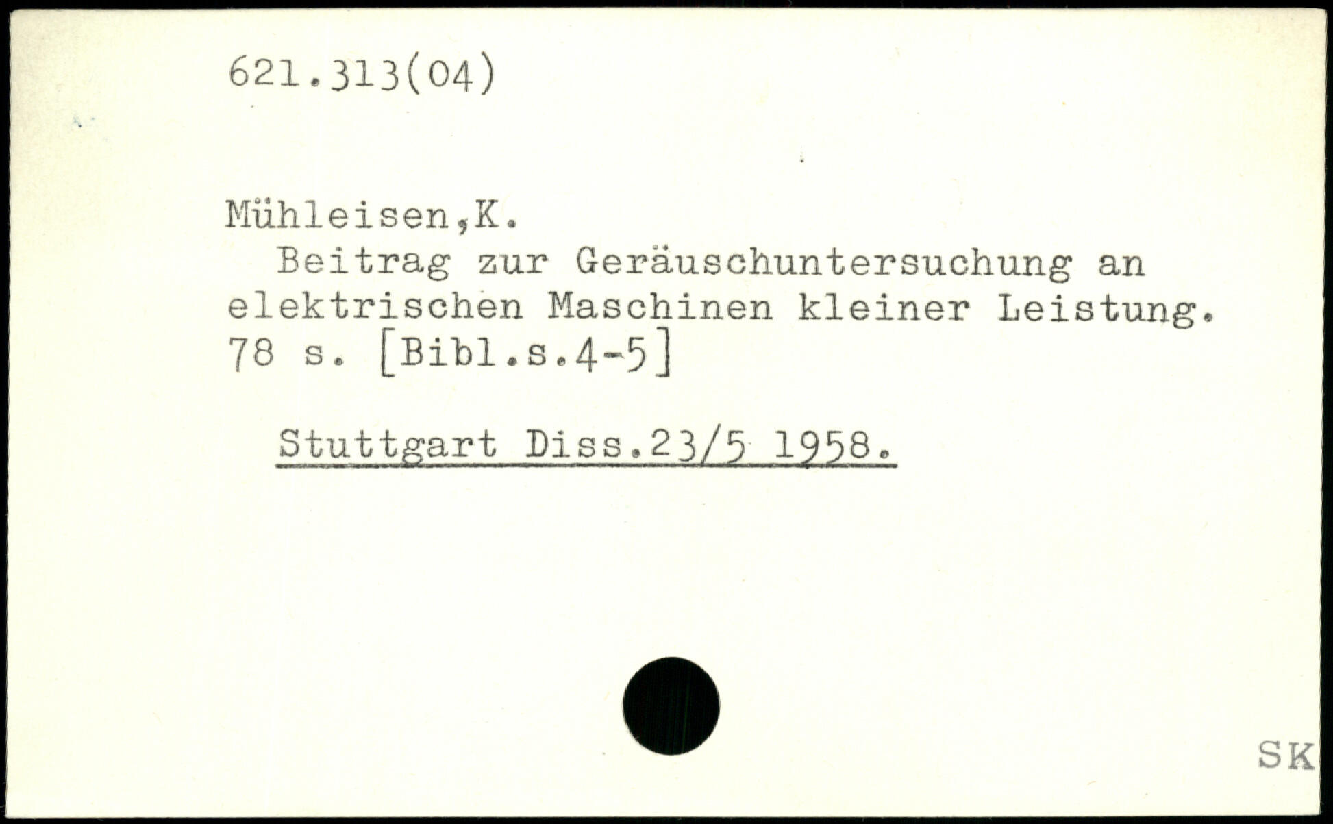 Beitrag zur Geräuschuntersuchung an elektrischen Maschinen kleiner Leistung.
