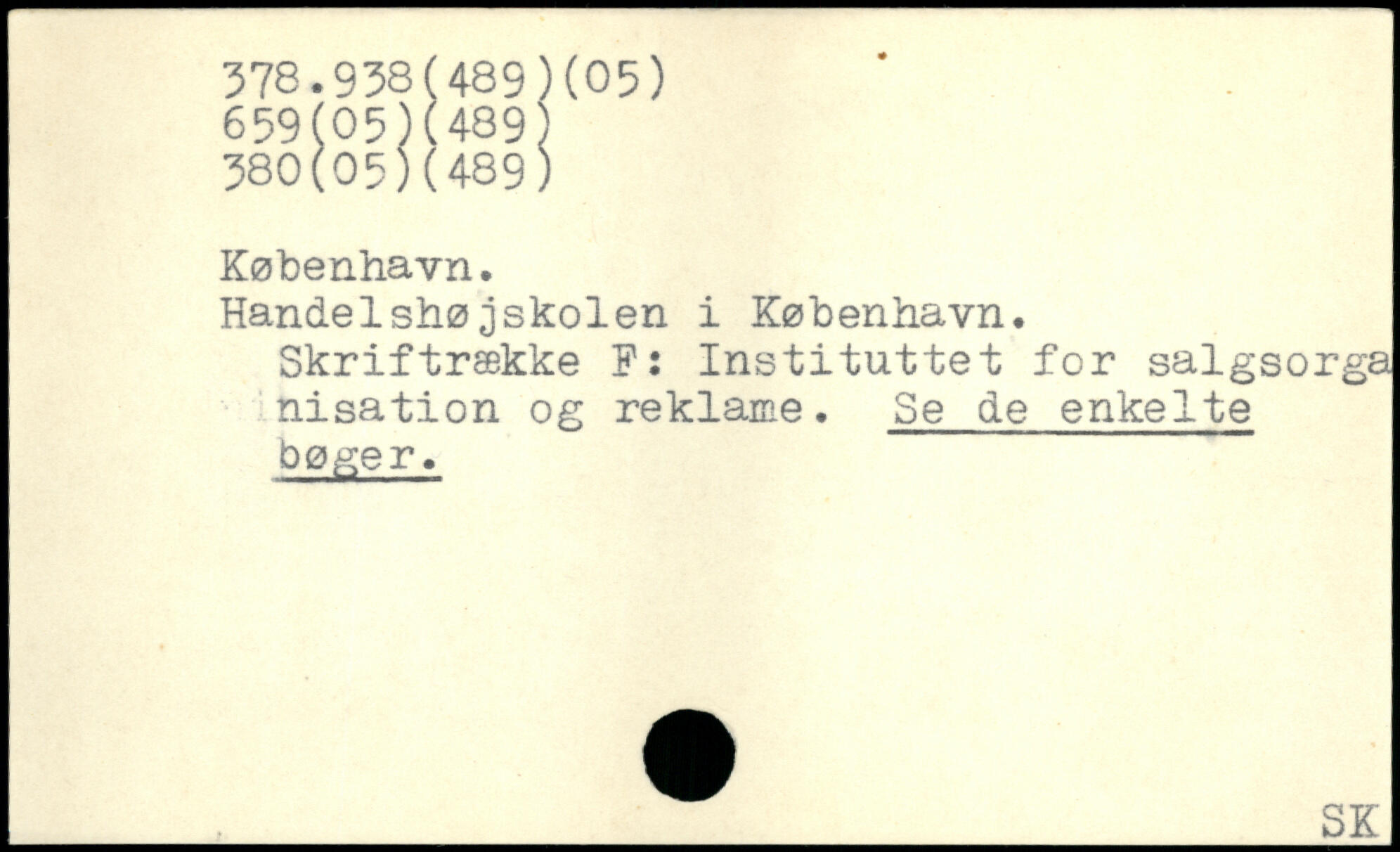 Handelshøjskolen i København. Skriftrække F: Instituttet for salgsorga nisation og reklame. Se de enkelte bøger.